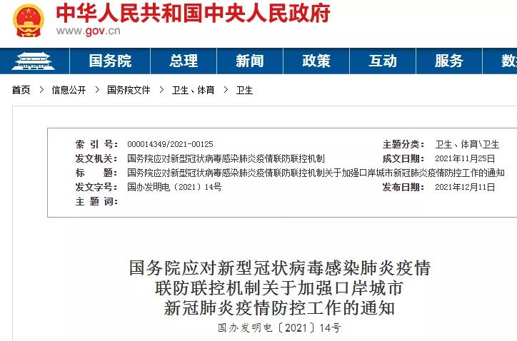 12月11日,國(guó)務(wù)院應(yīng)對(duì)新型冠狀病毒感染肺炎疫情聯(lián)防聯(lián)控機(jī)制印發(fā)《關(guān)于加強(qiáng)口岸城市新冠肺炎疫情防控工作的通知》,其中《通知》要求做好冷鏈?zhǔn)称穫鞑ワL(fēng)險(xiǎn)防控工作,各?。ㄗ灾螀^(qū)、直轄市)要抓緊組織本轄區(qū)口岸城市開展一次冷鏈相關(guān)企業(yè)風(fēng)險(xiǎn)排查,全面評(píng)估和整改各環(huán)節(jié)風(fēng)險(xiǎn)漏洞,并于2021年12月15日前將排查整改情況報(bào)送國(guó)務(wù)院聯(lián)防聯(lián)控機(jī)制綜合組。并要求離開陸地邊境口岸城市需持48小時(shí)核酸證明。