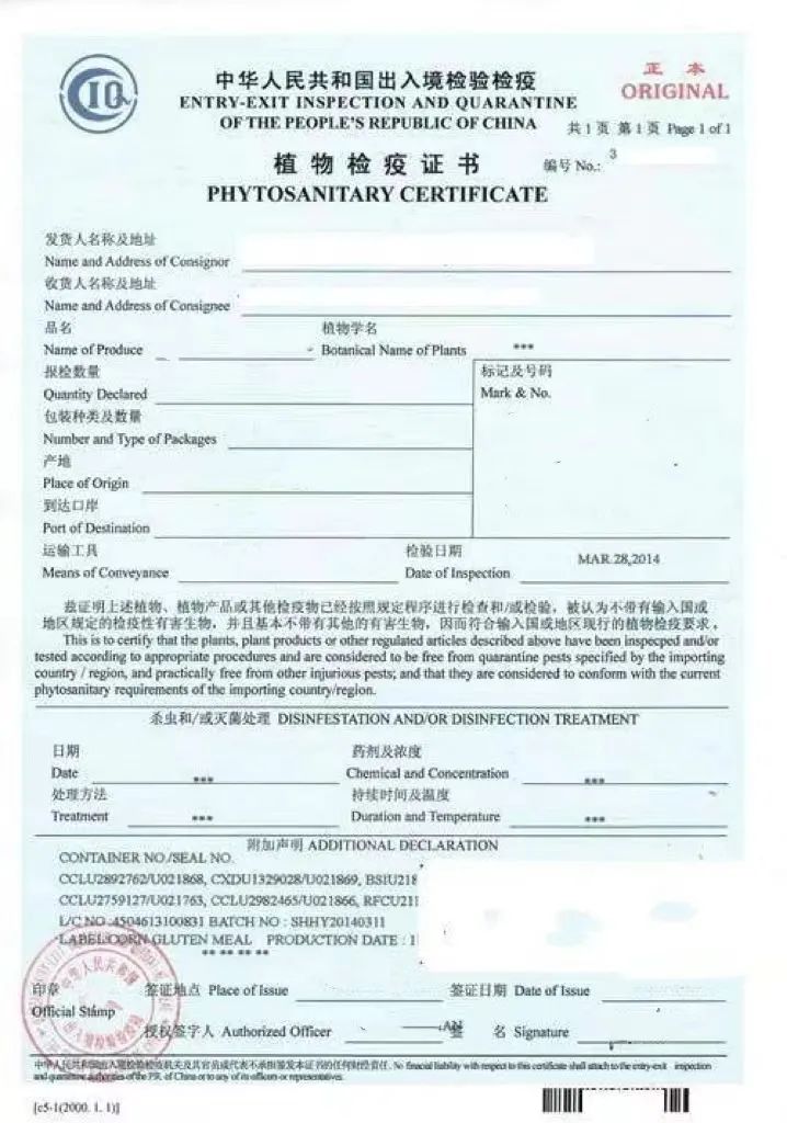 【該批貨物來自注冊加工企業(yè)(注冊號***),符合盧旺達(dá)甜葉菊輸華植物檢疫要求議定書要求”】。經(jīng)熏蒸處理的,還應(yīng)在植物檢疫證書中注明熏蒸處理日期、溫度、濃度和持續(xù)時間等處理指標(biāo)。