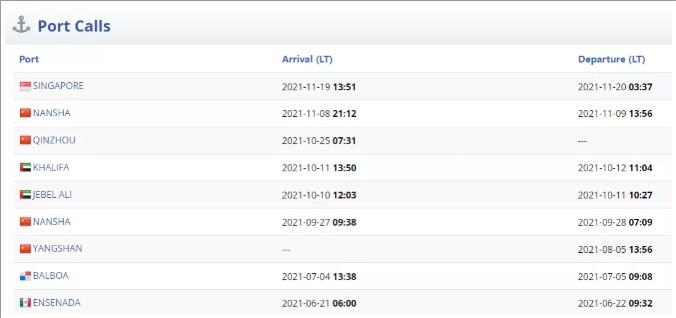 數(shù)據(jù)顯示,該集裝箱船服務(wù)于業(yè)界知名的亞洲-西非航線Asia-WestAfrica(WAE),掛靠上海、寧波、蛇口、南沙等眾多國內(nèi)港口以及最大的國際中轉(zhuǎn)港——新加坡港。