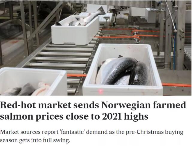 “歷年來,因圣誕期間歐美市場對三文魚需求旺盛、供應緊張,挪威產地每年第50、51、52周的報價都會相應上漲。從工廠情況看,隨著圣誕、元旦假期的到來,工廠需為工人的提前放假做準備,因此,第51、52周工廠每周只生產4天;且可生產供中國市場包裝要求(帶內包裝、標簽)的三文魚工廠加工能力受限,一定程度上影響著工廠的生產能力。從航空情況看,圣誕節期間,運力也較為緊張。另外,現挪威大規格魚的總體供應量不足,后市加上中國春節的臨近,預計價格行情大概率不會走低,2022年第一、二季度可能都會持續在高位運行。”