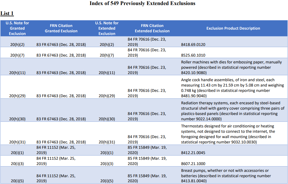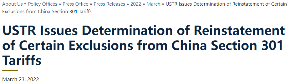 本次USTR公告和關(guān)稅豁免商品清單鏈接為:https://ustr.gov/sites/default/files/notices/FRN%20for%20Notice%20of%20Reinstatement.pdf