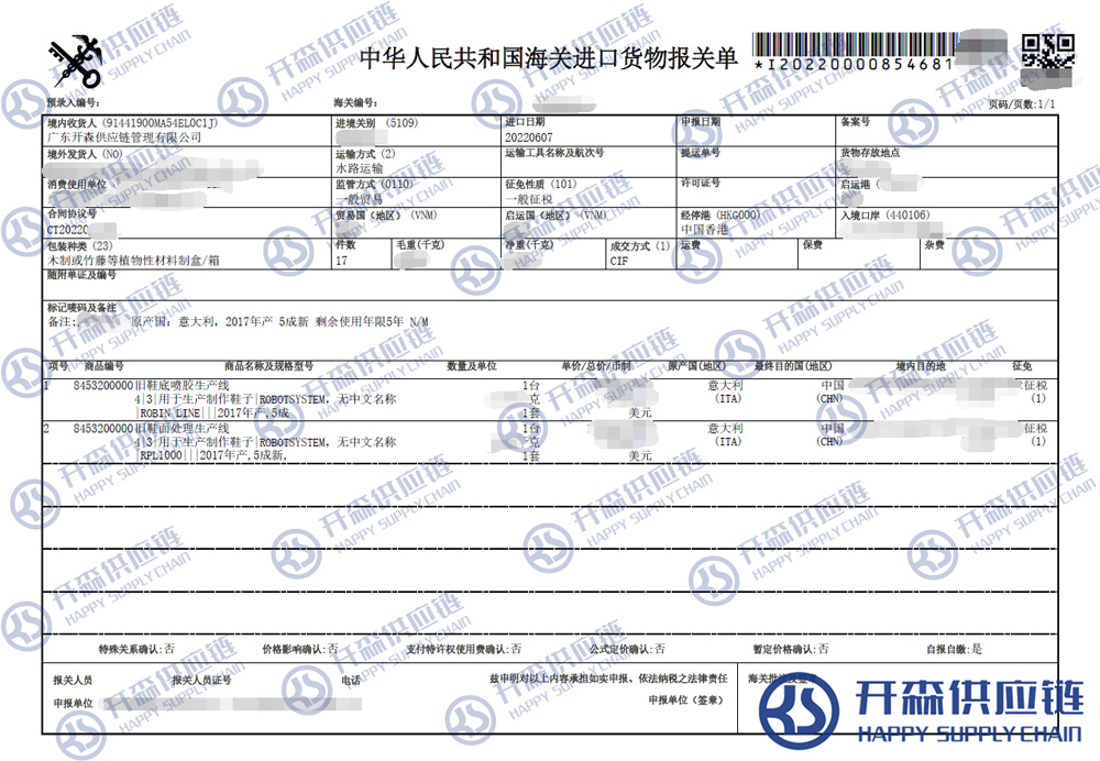 【導(dǎo)讀】您正在閱讀的是關(guān)于二手制鞋生產(chǎn)線設(shè)備進(jìn)口報(bào)關(guān)清關(guān)代理案例【經(jīng)典案例】的內(nèi)容,本文由開森二手機(jī)械進(jìn)口報(bào)關(guān)代理小編整理編寫;