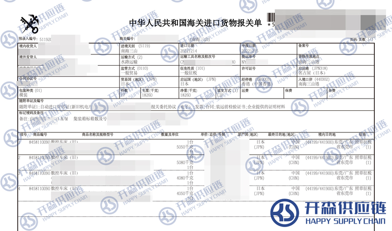 佛山港二手舊數(shù)控車(chē)床進(jìn)口報(bào)關(guān)代理服務(wù)【經(jīng)典案例】