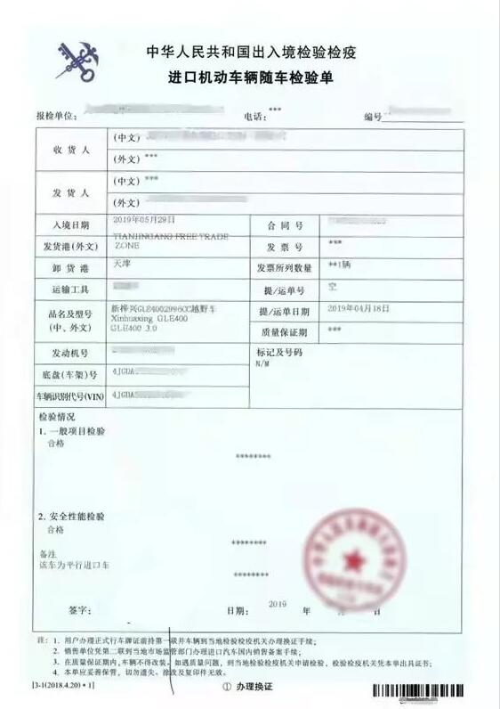 在口岸查驗環(huán)節(jié),口岸海關(guān)會對進口汽車進行一般的常規(guī)項目的檢驗和安全性能檢驗,同時還會根據(jù)所掌握的風(fēng)險信息對進口汽車的某些特定項目進行檢驗;經(jīng)檢驗合格的進口汽車,由口岸海關(guān)簽一車一單簽發(fā)“進口機動車輛隨車檢驗單”。