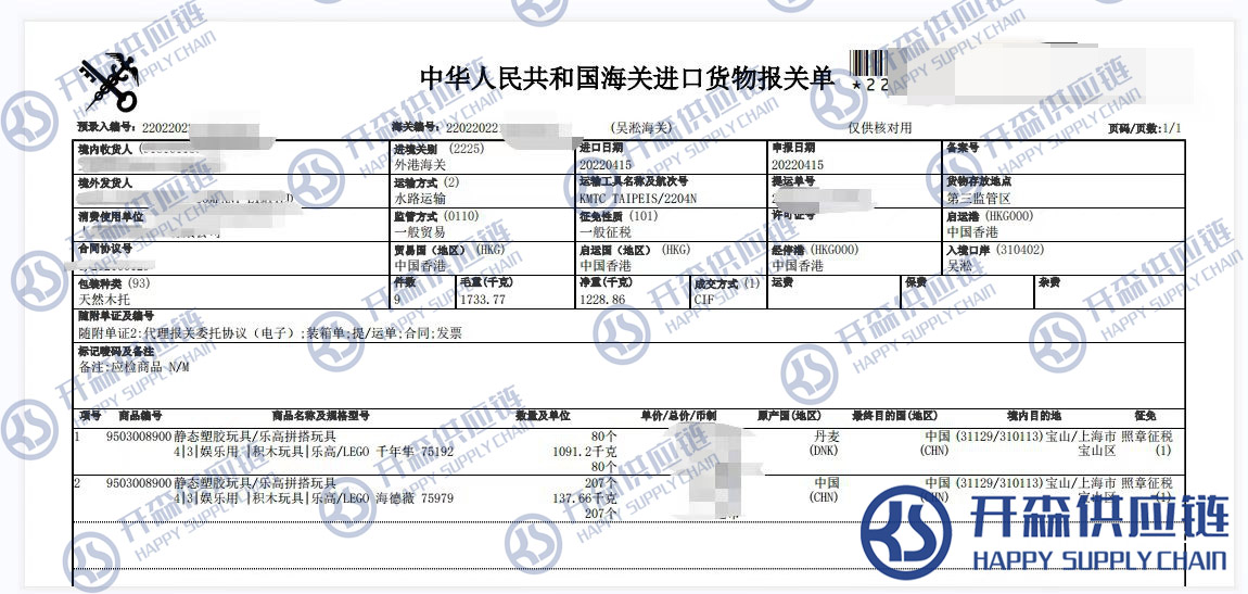 原文標題:樂高玩具進口報關清關代理服務【經典案例】