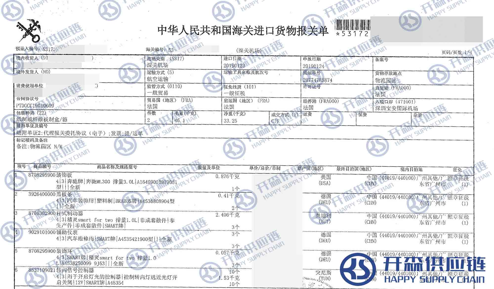 開森供應鏈擁有多種多樣的汽車配件進口渠道與豐富的進口報關案例。我司提供收貨、報檢(商檢)、報關清關、貨物運輸一條龍服務。我們公司的優勢:1、價格優惠;2、安全快速;3、專業與便捷。