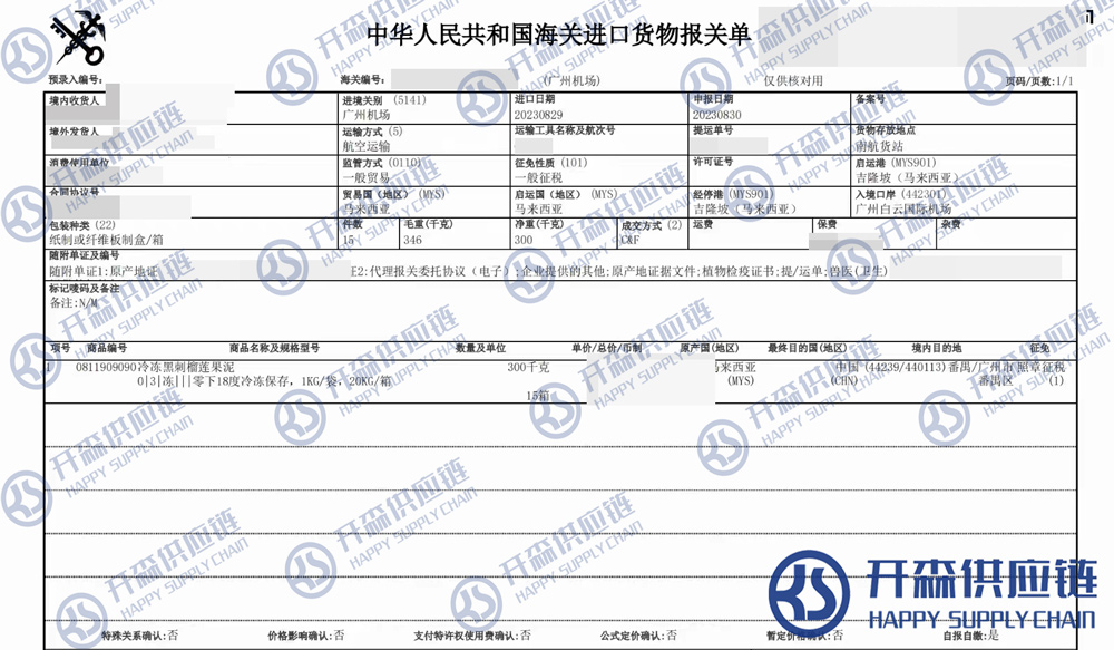 一、馬來西亞冷凍榴蓮果泥進(jìn)口報(bào)關(guān)代理案例詳情